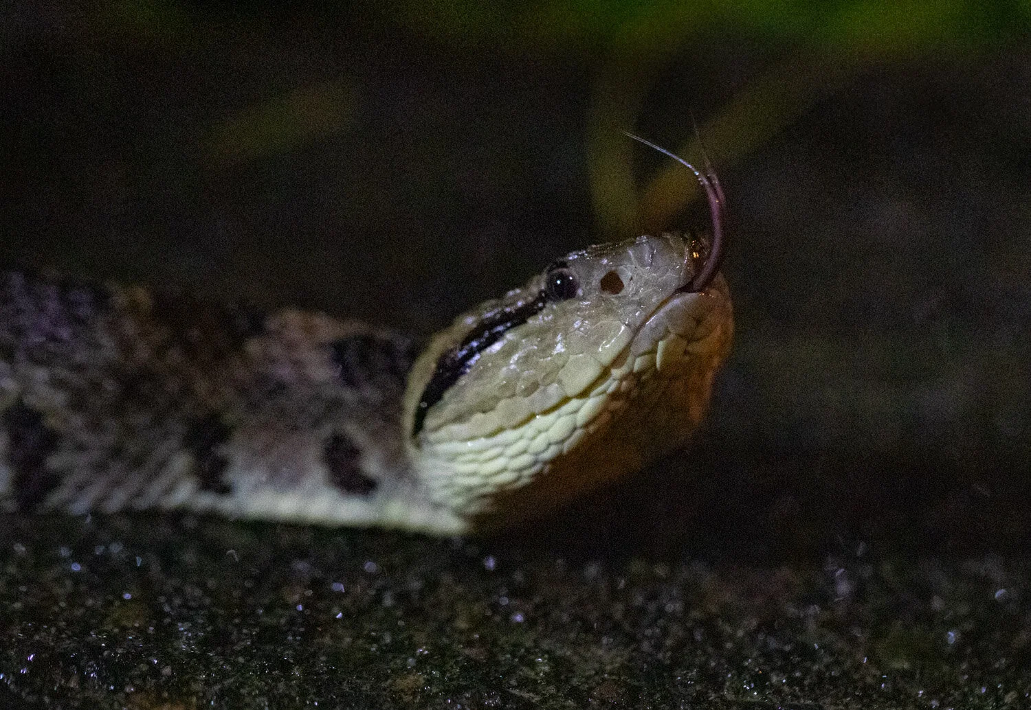 We eventually arrived at the lodge and received an excellent welcome by two deadly snakes. A young yellow morph Eyelash Pit Viper that was literally hanging out on the Arenal Observatory welcome sign, followed by a Jumping Pit Viper that was on the path. A great start! We then got taken to our rooms in our own private villa in a nice secluded spot on the reserve.