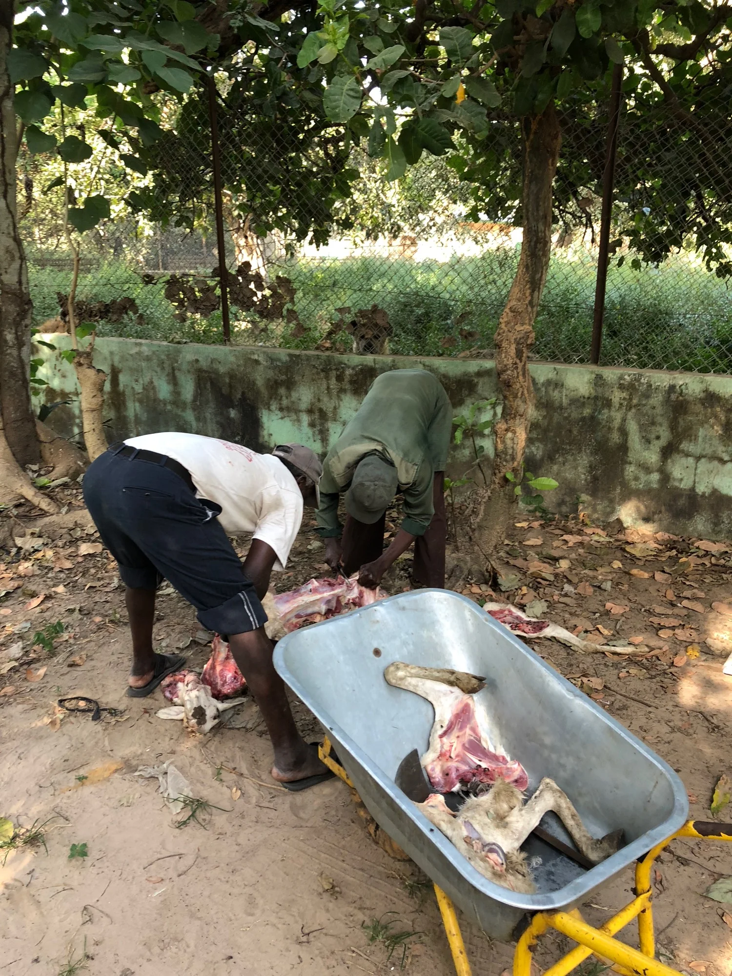 Moving deeper into the forest we started to pick up the true forest species such as Little Greenbul, Yellow-breasted Apalis, Pied Hornbill, Violet Turaco, Pygmy Kingfisher, Lesser Honeyguide, and Green Turaco. Then we walked through more open areas and had Swallow-tailed bee-eater, Green-backed Eromemola, Klaas’s Cuckoo and Fanti Saw-wing. The forest walk ended up at a small shop in the middle of the park where we had a nice lunch. The shop was part of a cluster of buildings associated with a bizarre animal sanctuary that straddled the line between sanctuary and zoo. It only seemed to keep baboons and Hyenas, which sadly, I think were there for show. Anyway we were lucky and caught feeding time. The rangers butchered a goat in front of us which roused the hyenas from their underground dens and started doing their characteristic whooping calls. One of my absolute favourite sounds of the wild. Pa, our guide asked me to go in the cage with them, I thought he was joking. He wasn’t, but I still wasn’t convinced. Then, out of nowhere Andy came and walked straight into the cage with them and started taking photos, without a care in the world of the danger. Soon the realisation of what he was doing soon kicked in (going off the expressions on his face). This somehow twisted my arm into getting in with them for a few brief snaps. Not my finest hour but hey ho.